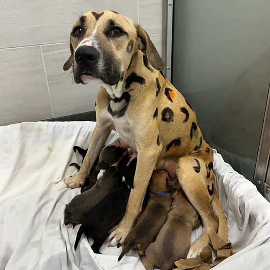 Rainbow Brite and her puppies were carefully transported to the Arizona Humane Society’s Lazin Animal Foundation Second Chance Animal Trauma Hospital.