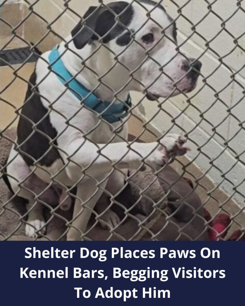 Tears As Shelter Dog Places Paws On Kennel Bars, Begging Visitors To Adopt Him