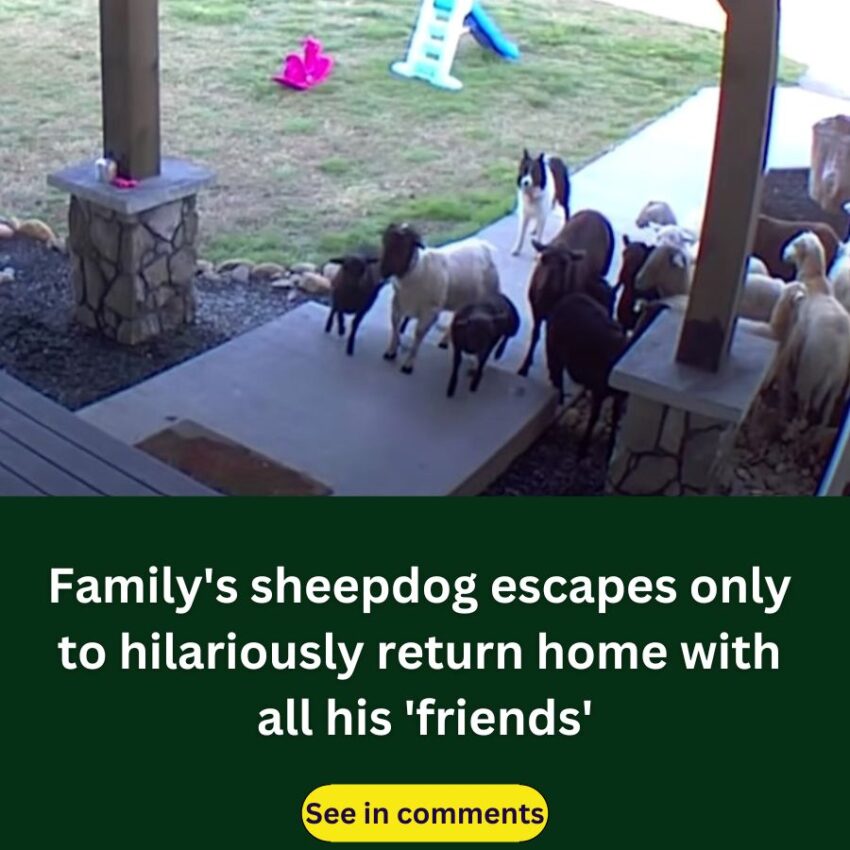 The long night was filled with worry. Everyone hoped Max would come home safely. The next morning, just as the family was getting ready to go out and search for him, they heard the sound they had been waiting for. From across the yard came the familiar sound of paws padding against the ground, and there was Max, trotting toward them like nothing had happened. But Max didn’t come back alone. To the family’s absolute astonishment, their beloved sheepdog was accompanied by three unexpected visitors—a goat, another dog, and a small deer. The sight was so surprising and adorable that the family could hardly believe what they were seeing.