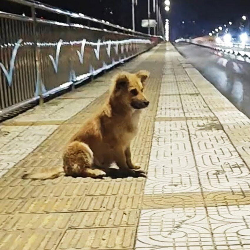 One day, a passerby noticed the pup sitting on the overpass, looking sad and lonely.