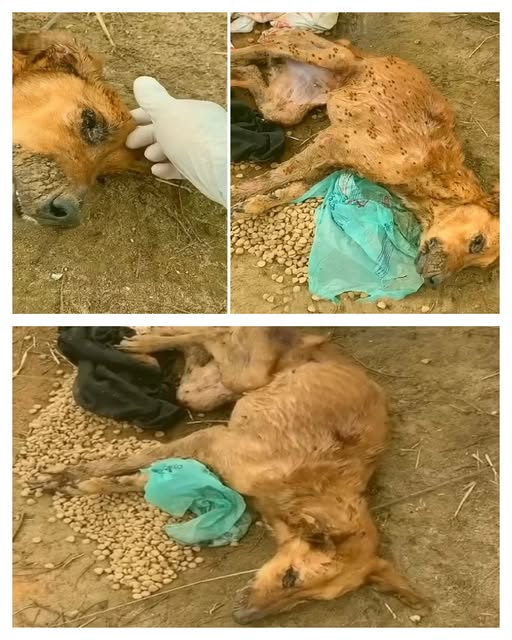 When rescuers from the animal charity Pitiful Animal first found her, she was lying on a barren patch of earth, surrounded by nothing but silence and indifference. The midday sun blazed above, but her body — frail, motionless, and covered in ants — barely clung to life. Her paws were crawling with insects, her breathing shallow. She couldn’t stand, couldn’t move, and couldn’t cry out anymore. She had simply given up.