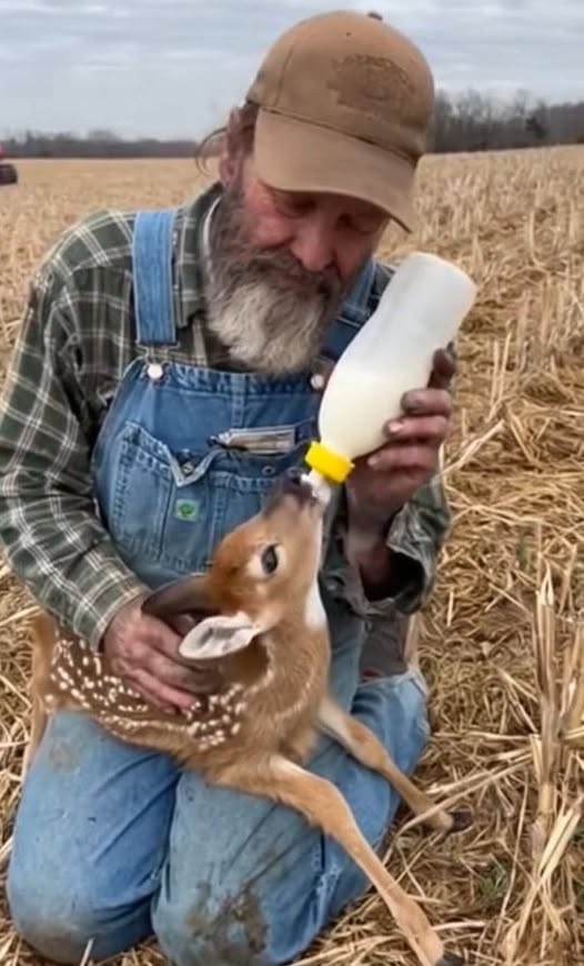 He was on his first pass this morning when he thought he heard a cry, thin as a thread. He slammed the brakes on the tractor, his heart in his throat, and climbed down. There, in the stubble, was a newborn fawn, impossibly small.