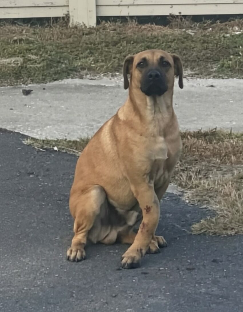 At the center of this canine clan stood the patriarch, a brindle-coated male the rescuers would name Muddy for the mud-caked wounds plastering his tawny fur. Muddy was a striking figure, a mix of Thai Ridgeback and Boerboel heritage, with powerful shoulders, floppy ears scarred from battles unseen, and eyes that burned with unyielding determination. His most heartbreaking feature was his right front leg: bent at an unnatural 45-degree angle, the bone protruding slightly beneath inflamed skin dotted with puncture wounds. Veterinary examination later revealed it wasn’t a fresh injury—X-rays showed healed fractures layered over older breaks, likely from multiple vehicle strikes or fights with feral packs. Yet, Muddy moved with a limping grace, positioning himself as the unbreakable shield for his family. “He was the sentinel,” recounted local rescuer Aree Jiranunt, founder of the Chiang Mai Stray Guardians network. “Even in agony, he growled at us first, buying time for the others to retreat deeper into the shadows.”