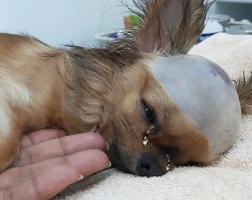 The phone rang at the rescue center just after noon. A concerned neighbor’s voice trembled through the line. A dog had been hit—hard—by his own owner. There had been yelling, then a sickening thud, and then silence. The caller wasn’t sure if the dog was still alive. When the rescue team arrived on the scene, what they found was gut-wrenching. A small dog, no more than a few years old, lay limp near the corner of the yard, blood slowly crusting near his temple. His body was still, save for the shallow rise and fall of his chest. His tiny head was grotesquely swollen. One eye was nearly shut from the impact. And the person who was supposed to protect him—the one who should have given him warmth, food, love—was nowhere to be found. They named him Warrior.