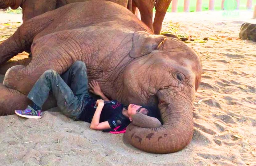 “Even though Faamai is a big elephant, every time she hears a lullaby from Lek, she still falls asleep at Elephant Nature Park,” the caption alongside the clip reads.