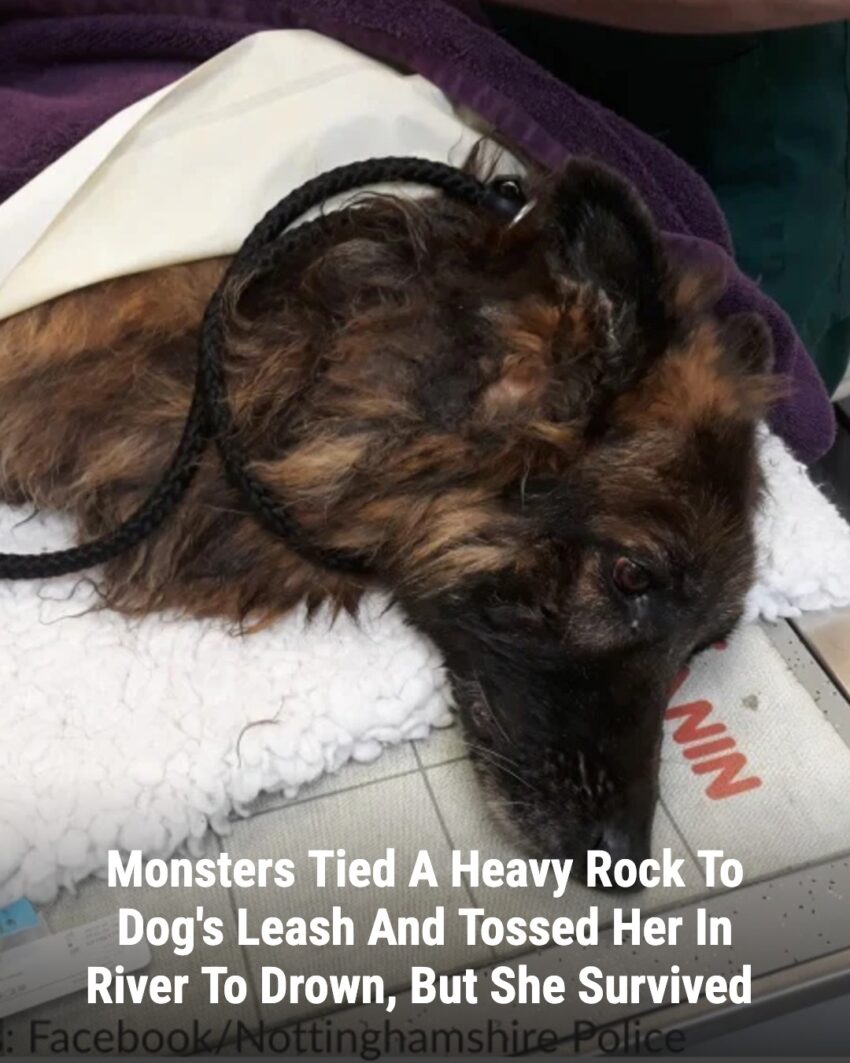 A Belgian Shepherd almost drowned because some heartless people tied a heavy rock to her leash and tossed her into the river. The woman managed to drag the poor dog out of the river and immediately contacted Nottinghamshire Police.