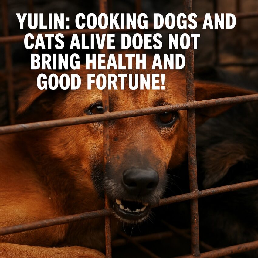 Since the 1990s, one remote city in the Guangxi Zhuang Autonomous Region of China has been celebrating the year’s longest day by abducting, caging, torturing, killing, and eating tens of thousands of dogs & cats in the hopes of reaping good heath and fortune.