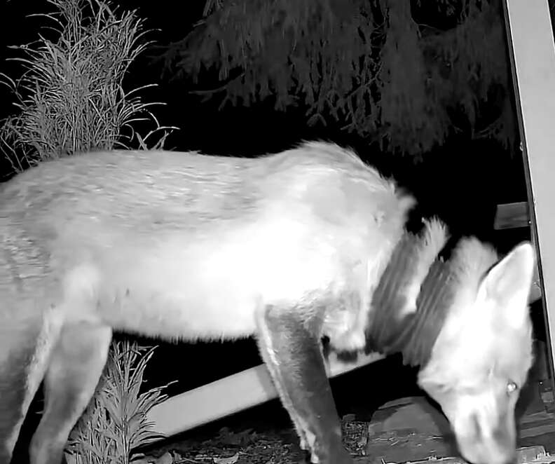 The tube appeared to have split into two pieces. The fox’s fur stuck out between them as he prowled Bernstein’s property.