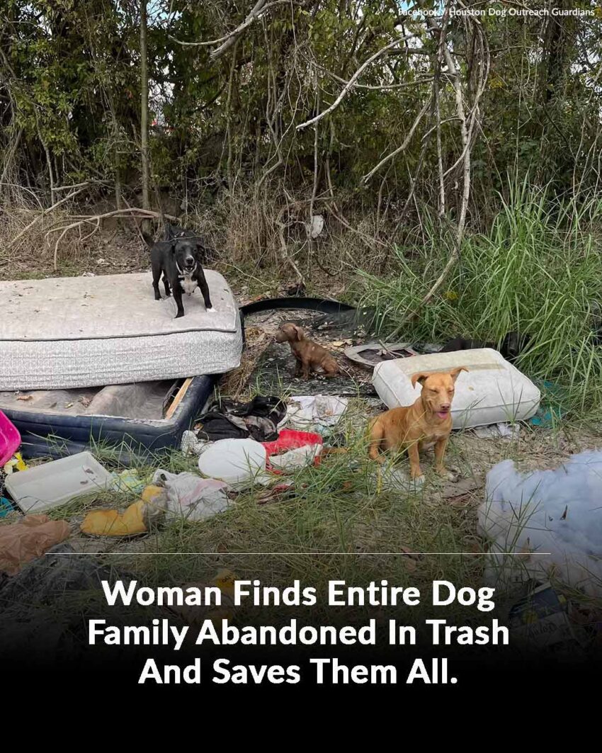 When a woman in Houston, Texas, took her usual route home from work, she never expected to stumble upon a heartbreaking scene that would change the lives of an entire dog family. Nestled between heaps of discarded trash and old mattresses, a group of stray dogs had made a makeshift home. What initially appeared to be two dogs quickly turned into a much larger discovery—an entire family of six, abandoned and in desperate need of help.