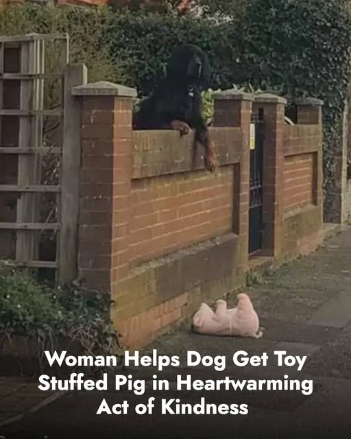 This uplifting story of a woman helping a dog retrieve his toy has resonated with many, not just for its sweetness but for what it reveals about compassion and attentiveness. The dog, who had dropped his beloved stuffed pig over the wall of his yard, was leaning over the edge, clearly trying to get it back. According to Cummings, the dog could have jumped down to retrieve it himself, but it appeared he had been well-trained not to leave his yard, even when his favorite toy was just out of reach.
