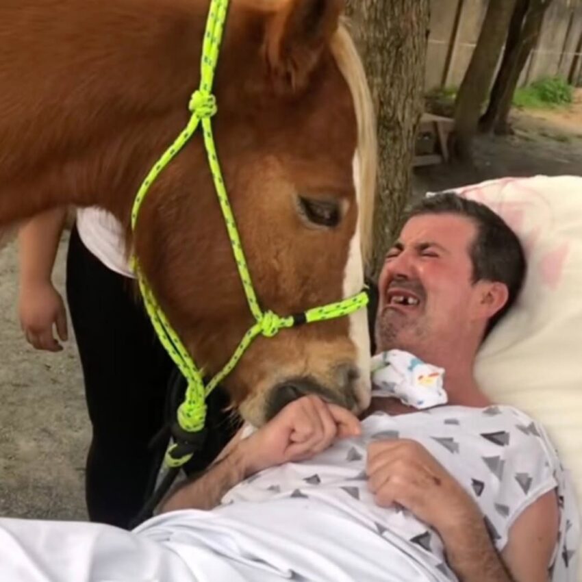 Earlier this week, Spake shared a touching video showing the moment Paçoca came to pay a visit to her father. Sensing, it would seem, the type of interaction João needed most, Paçoca gently nestled against his chest in a quiet exchange of