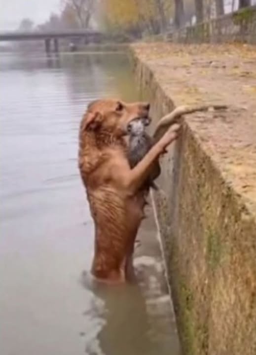 People often speak of strength in dramatic terms—heroes lifting cars, firefighters running into burning buildings, athletes pushing their bodies beyond their limits. But strength also exists in these small, often unseen moments: a trembling mother dog standing knee-deep in freezing water, looking for salvation while refusing to let her pup fall. There is a beauty in that kind of courage, a purity that cannot be measured or fully explained.