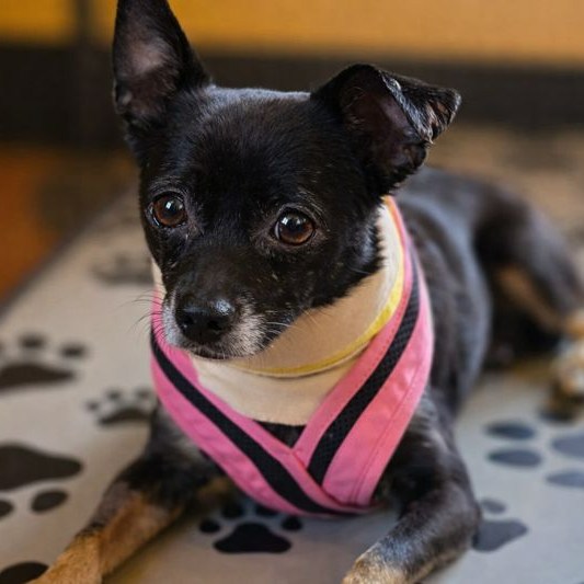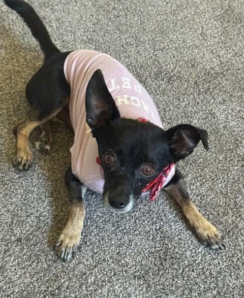 Rusty rested on soft blankets, surrounded by care.