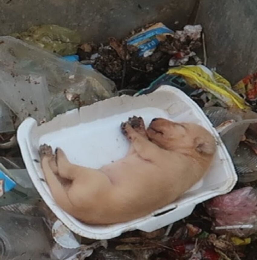 A tiny puppy, frail and starving, wandered along a dusty road, his fragile legs barely supporting him. His ribs pressed against his thin skin, and his wide eyes held a silent plea for help.