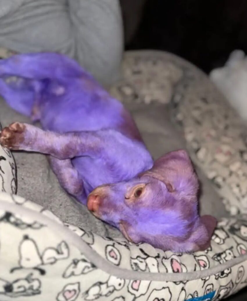 The purple slowly fades as tan fur grows through.