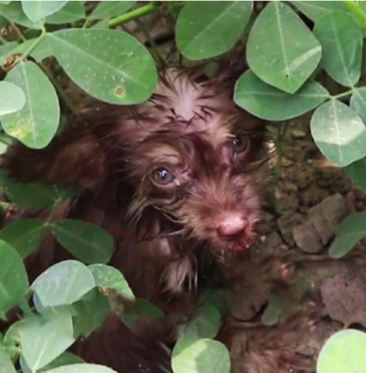 In a heart-wrenching encounter, a tiny puppy was discovered abandoned near a trash can, bearing a severe wound on its head. Its once-soft fur was now tangled and matted, reflecting the harsh circumstances it had faced.
