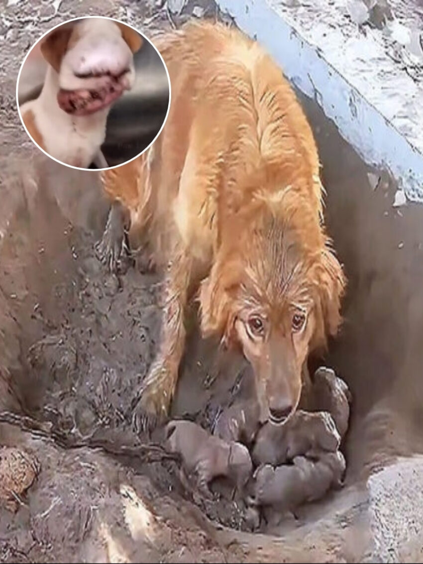 Until one day, a kind-hearted neighbor noticed. They saw the mother’s thin frame, the muddy puppies struggling beside her, and the chain that kept her bound to a life of suffering.
