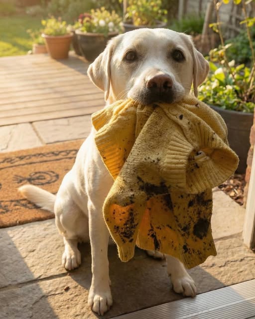 Baxter placed the sweater gently at my feet, barked sharply — then picked it up again and trotted forward, stopping every few steps to look back at me.
