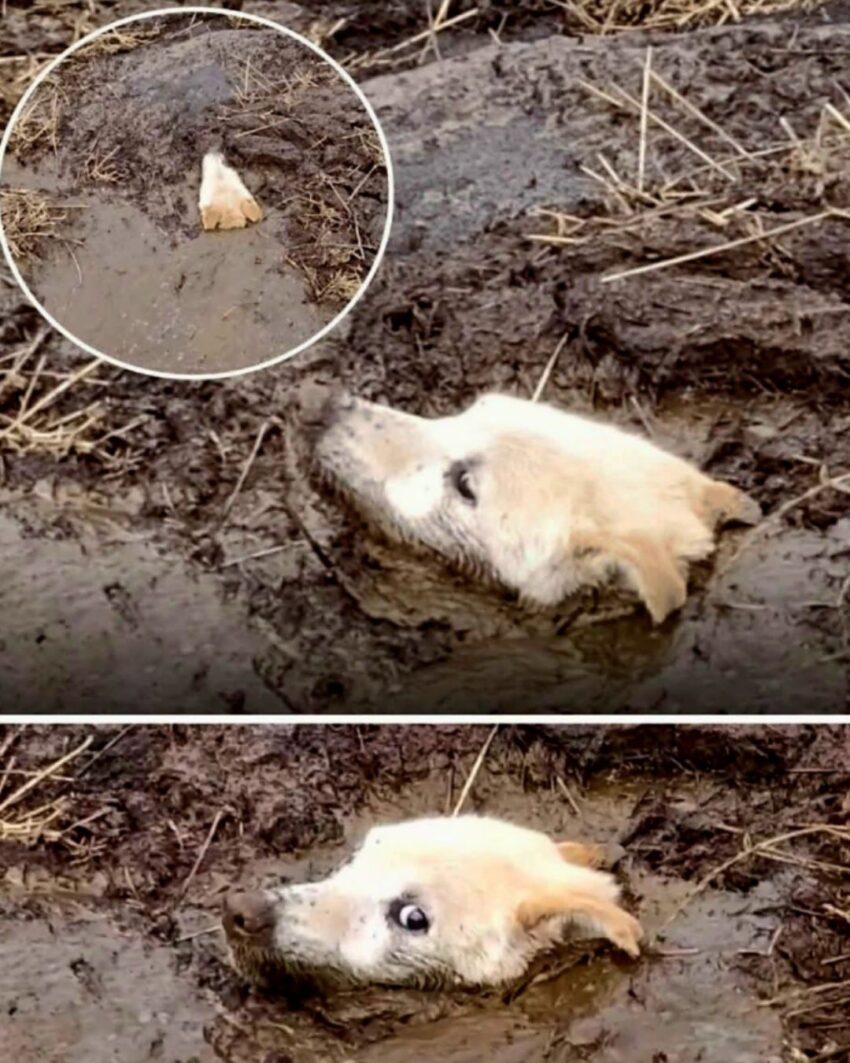 Finally, with one final, desperate pull, the farmer managed to grab hold of the dog’s frail body and dragged her free from the suffocating grip of the mud. She was a pitiful sight—her fur caked in filth, her body limp, but she was alive.