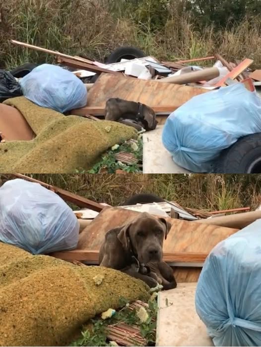 Her curiosity led her to stop and take a closer look, which revealed a heartbreaking sight—a dog so scared and frail that it merged into the surrounding debris.