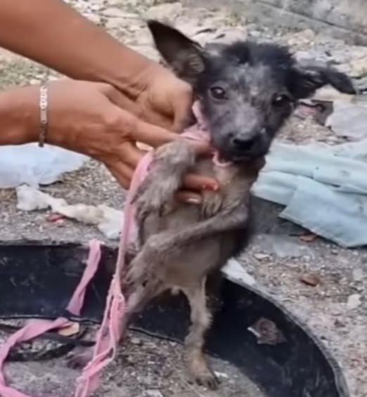 A rescue team recently shared a series of photos depicting their mission to save a small dog from a dire situation. The team found the dog tethered on a narrow, trash-filled road, highlighting the poor conditions in which he had been living.